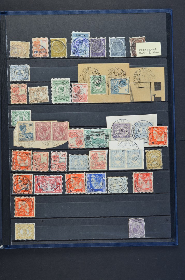 NED.- INDIË POSTHISTORIE, stempels van postagenten Singapore, Penang, aan boord van mailstomers, postkantoor Penang en Paquebot op losse zegels in insteekboek
