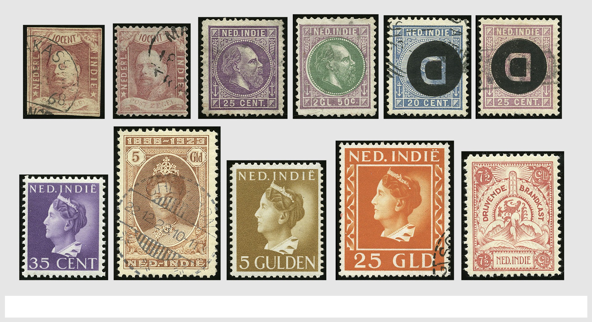 NEDERLANDS INDIË 1864-1949, meest gebruikte verz. in Davo album wb. 1(3), 2, emissie 1870 uitgebreid op tandingen gespecialiseerd, Java met opdrukvariëteiten, 79a *, vert. paar 70fa-70 (cert.), Buiten Bezit ook met opdrukvariëteiten , 141A, 277 (2), 278, 280 *, 287 *, 289, P1 *, Dienst met div. tandingen en kopstaande opdrukken, o.a. fraai ex. 5f, Brandkast 1/7 *, alsmede Ned. Nieuw Guinea compleet