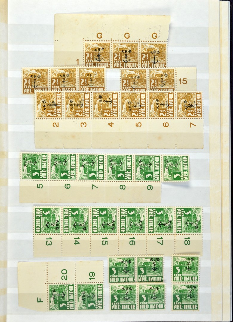 JAPANESE OCCUPATION 1942-1945, BGO. Stock book filled with unused/mint stamps all with anchor overprints from Borneo, Celebes and Lesser Soenda Islands, mainly quantities in singles and parts of sheets