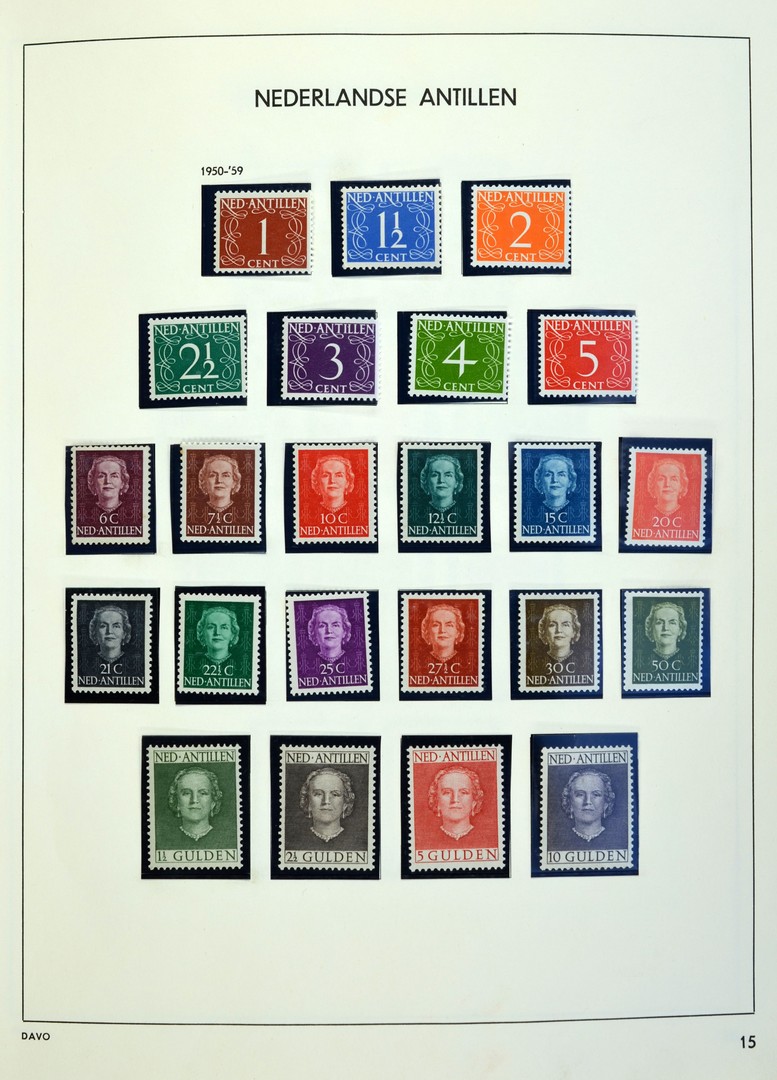 NEDERLANDSE ANTILLEN 1949-2010, geheel complete postfrisse verzameling in 3 luxe Davo albums, wb. ook de siervellen, gutterpairs, persoonlijke uitgiften, etc., etc. Mooie koop met hoge waarde!