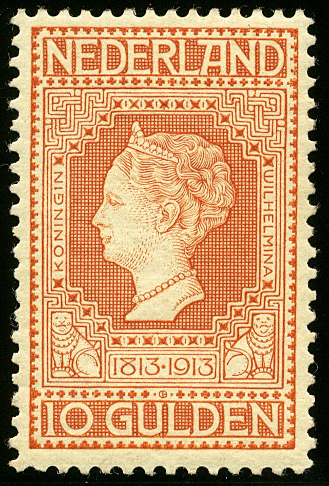 101, 10 gulden roodoranje, postfris prachtex. met cert. C. Muis (2004) € 2250