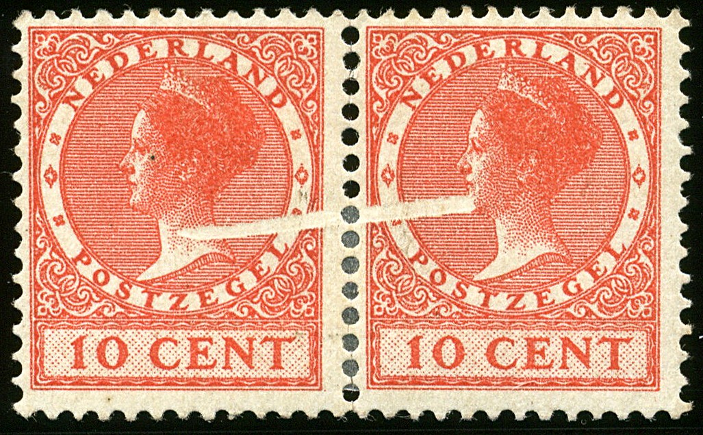 153, 10 Cent Veth, ongebruikt paar (op tanding verstevigd), gedeeltelijk onbedrukt gebleven
