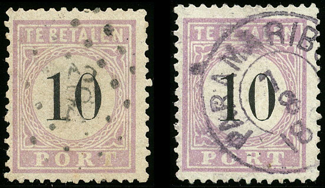 P3-I en III, 10 cent type I met puntstempel 204 en type III met kleinrondstempel, prachtex. € 320