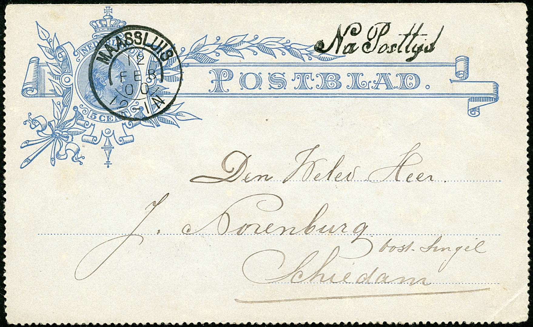 Pb. G6 van Maassluis 12-2-1900 naar Schiedam 12-2 met op vz. sierlijk ´Na Posttijd´