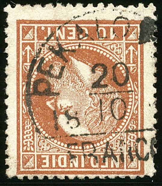 Halfrond-franco PEKALONGAN op 10c nr. 9. Prachtex. met mooie doch kopstaande afdruk van dit op deze emissie schaarse stempel (V.500)