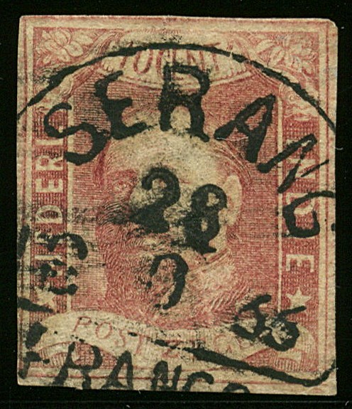 Halfrond-franco SERANG op 10c nr. 1. Zeer fraai ex. met iets gevlekte, overigens prachtige afst.
