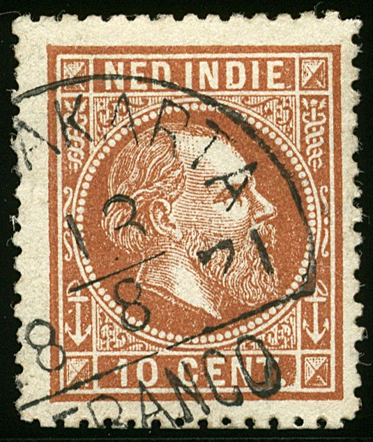 Halfrond-franco SOERAKARTA op 10c nr. 9. Prachtex. met grootste gedeelte van de afst. van 13-8-1871 (V.200)