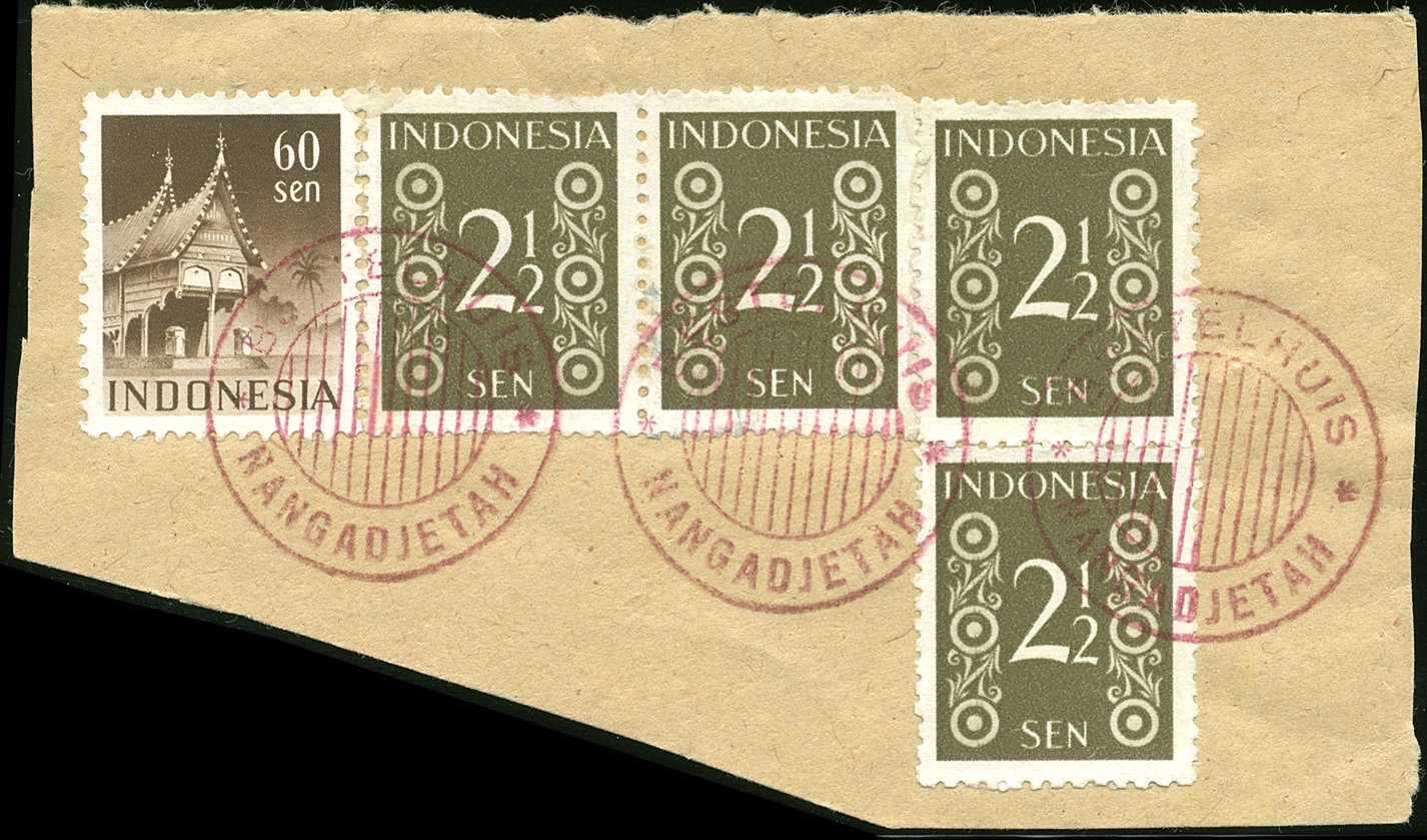 BESTELHUIS NANGADJETAH in rood op 3 knipsels uit op of omstreeks 1951