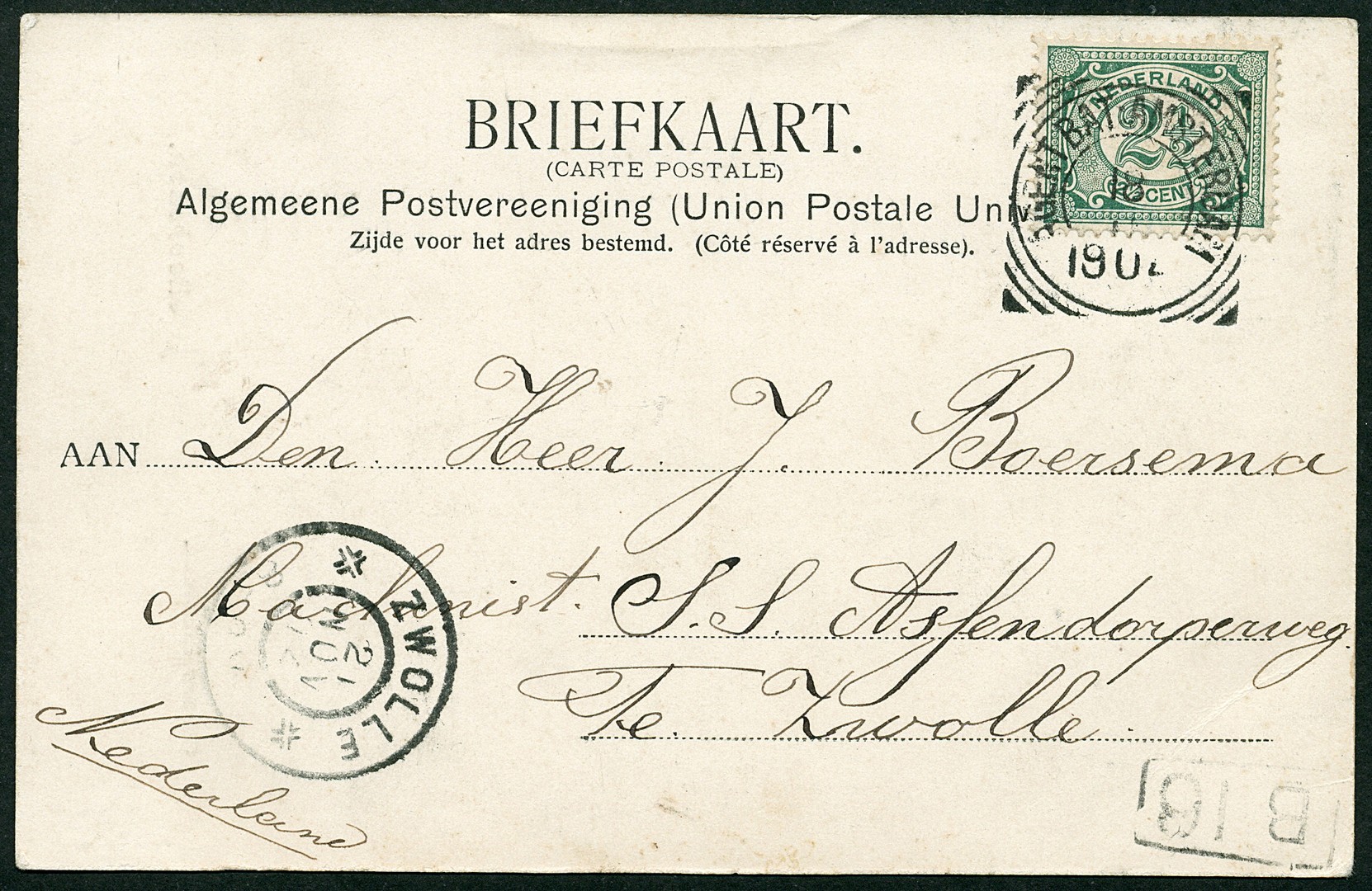 AGENT BAT:AMSTERDAM 18-11-1904 op 2½c op prentbk. naar Zwolle 21-11