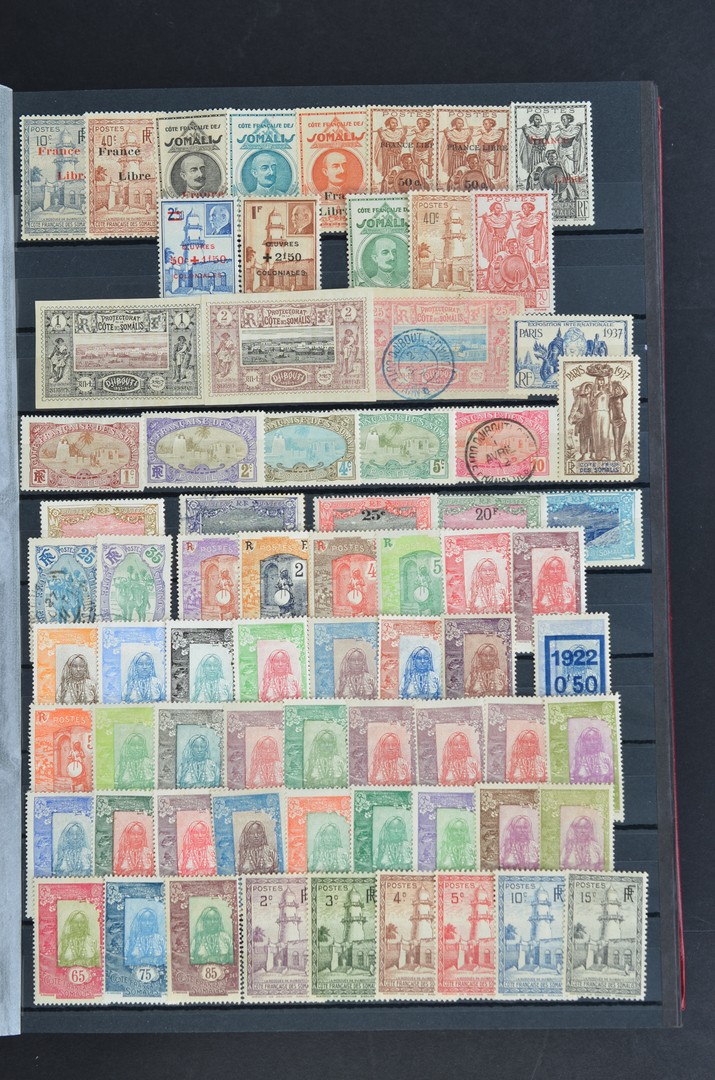 FRANSE KOLONIËN, o/* leuke partij met doubletten, meest ouder materiaal in dik insteekboek, alles Koloniën in Afrika