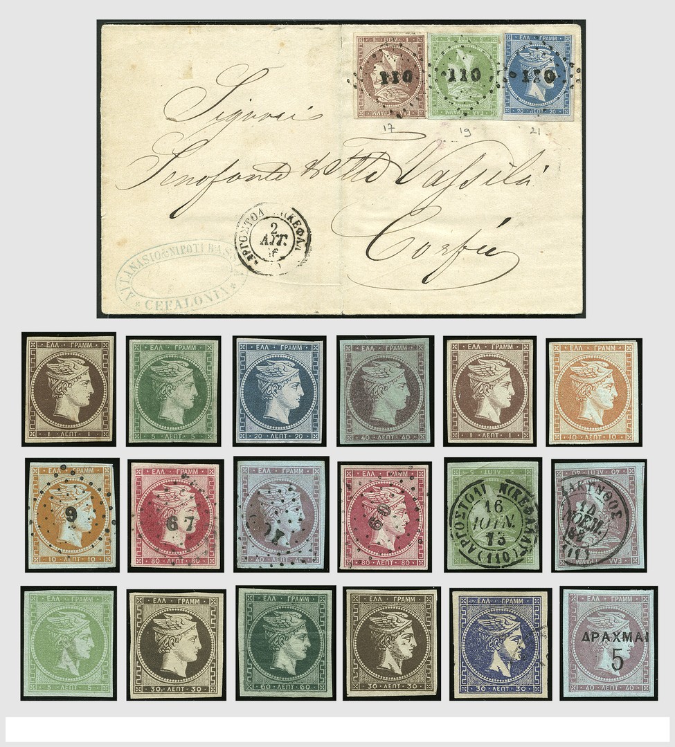 GRIEKENLAND 1861-1900, o/*/** schitterende uitgebreide collectie "Hermeskoppen" keurig opgezet op bladen in 4 Safe ringbanden met variëteiten op kleur, tanding en opdrukken. Tevens voorzien van talrijke brieven, een zeer mooie koop met hoge cataloguswaarde!