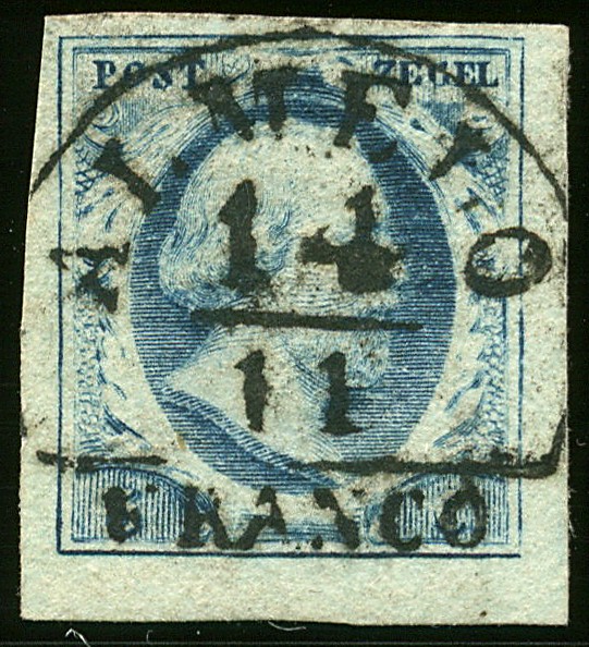 ALMELO A (EY.125) op 5 cent nr. 1b-Pl.I-98. Breed tot zeer breed gerande prachtzegel met ideale afst.