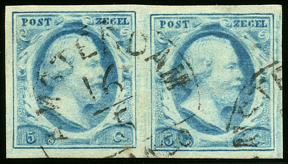 AMSTERDAM C zonder jaartal (EY.125) op 5 cent nr. 1l-Pl.IV-26/27. Prachtpaar met mooie afst.