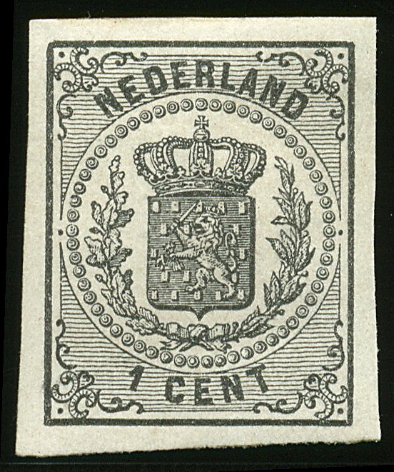 14v, 1 cent zwart, ongetand prachtex. met gom € 250