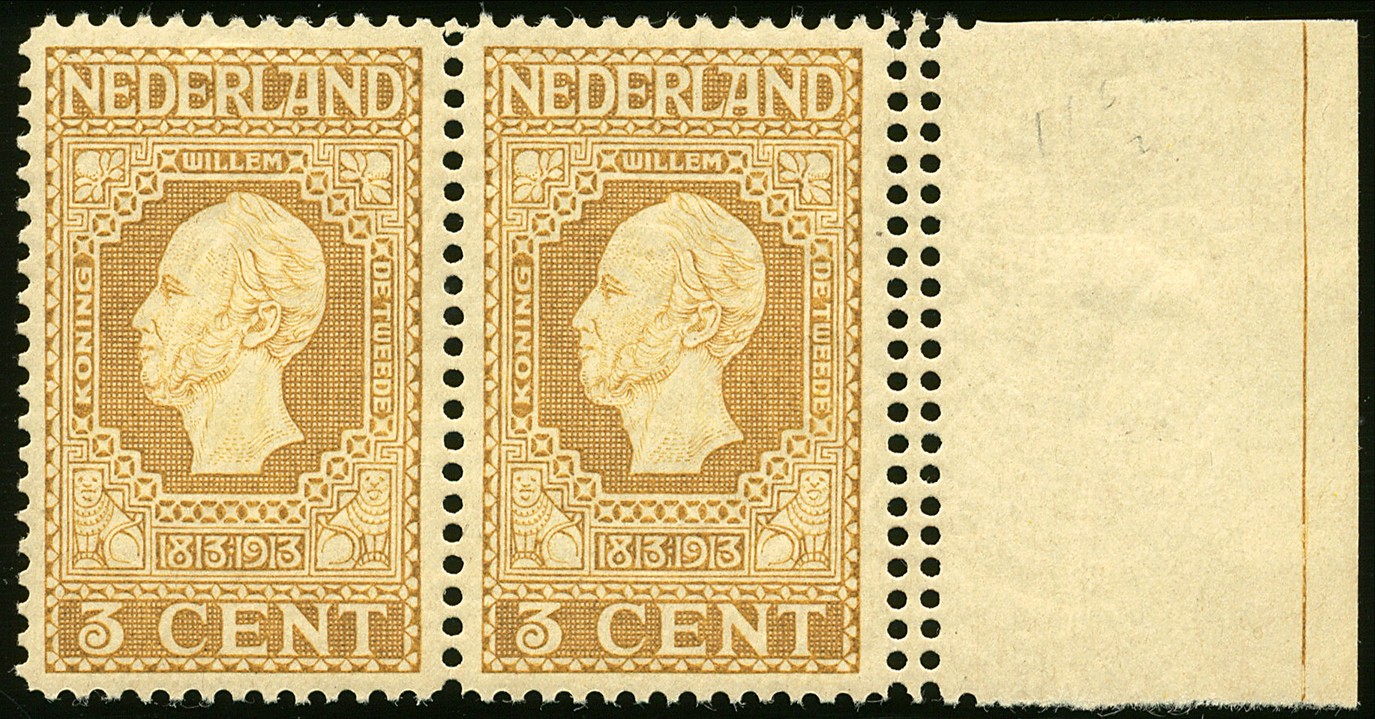 91/92, 3 cent en 5 cent, ongebruikte prachtex. met velrand waarin waarin dubbele perforatie