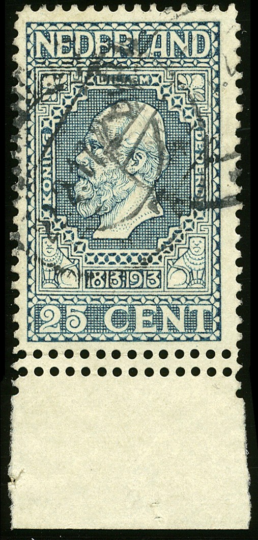 96, 25 cent, gebruikt prachtex. met velrand waarin dubbele perforatie