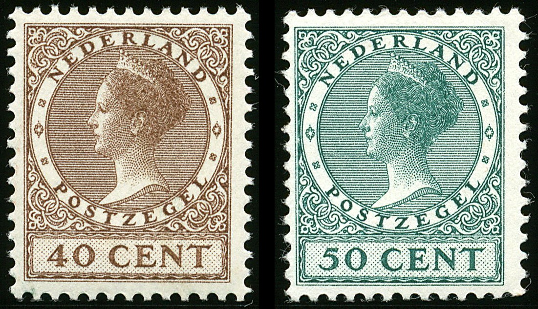 149/62, Veth zonder watermerk 5 t/m 50 cent, 15 cent licht getint en 30 cent met origineel zwart puntje, overige zegels luxe ex. met attest € 1300