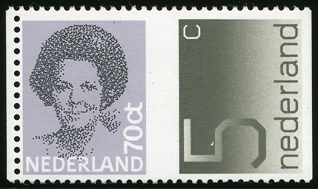 Combinatie C176, 70 + 5 met variëteit: 70 c. links getand en tussen de zegels ongetand! postfris prachtex.