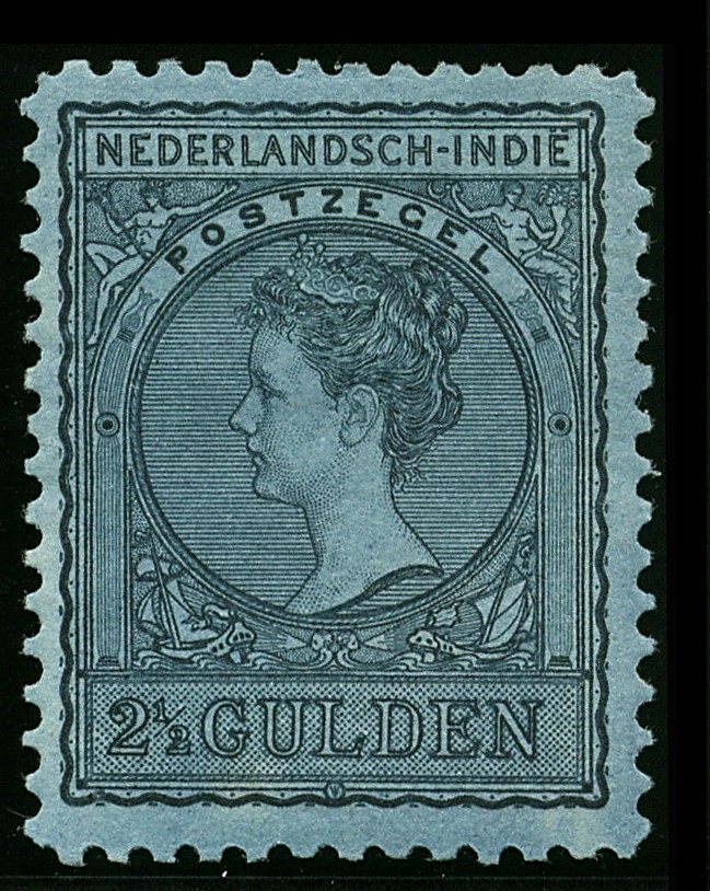 58/61, 1 en 2½ gulden op gewoon resp. blauw papier, ongebruikte prachtex. € 400
