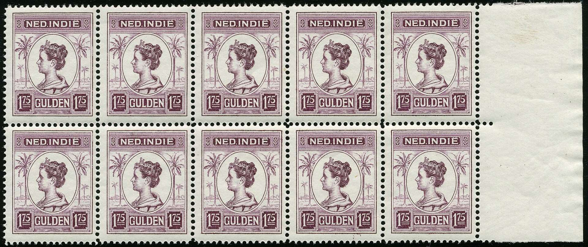 133, 1.75 gulden donkerlila in postfris pracht randblok van tien. € 1000