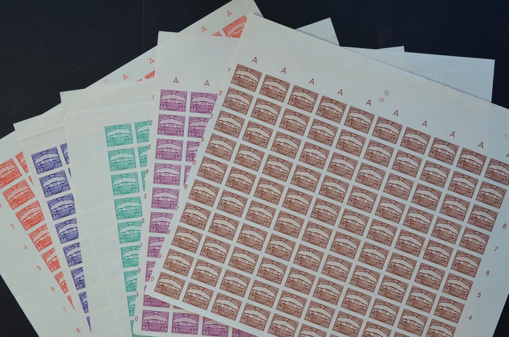 KPI.107A/111A, Hoofdpostkantoor Bandung 1953, ongetand, ongegomd, in veldelen van honderd. Rp. 100.000.000