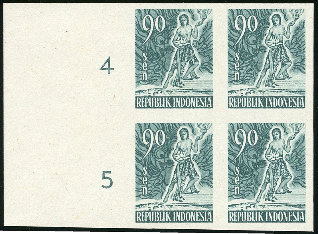 KPI.112A/116A, Ksatria 1953, ongetand en ongegomd in randblokken van vier. Rp. 4.000.000
