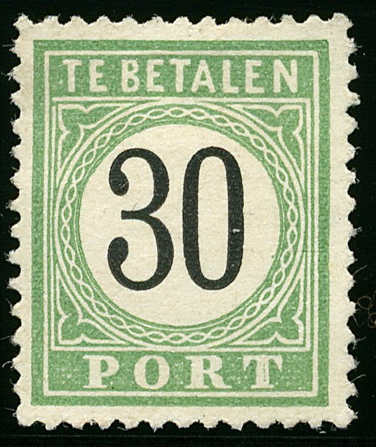 Port 8fb, 30 cent groen met plaatfout 'open lijst', ongebruikt prachtex. € 300