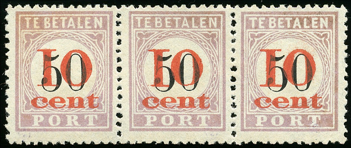 P16 in strip van drie, resp. type I, II en III, ongebruikte prachtstrip met cert. NVPH (1998) € 500