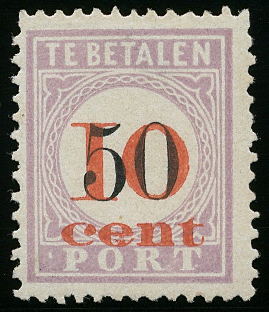 16fa, 10 cent op 50c type I met plaatfout ´Punt PORT´, ongebruikt prachtex. met oud cert. NVPH (1955) € 400