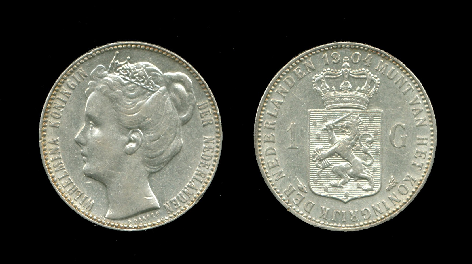 NEDERLAND, 1 Gulden Wilhelmina 1904 (Sch.806), ZF/PR