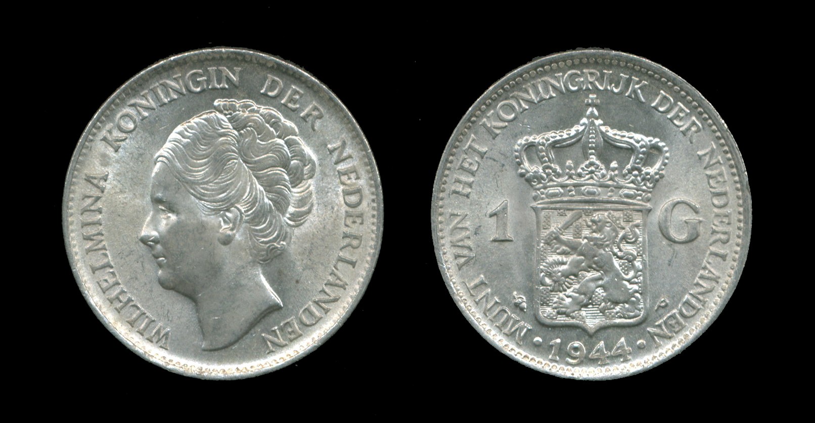 NEDERLAND, 1 Gulden Wilhelmina 1944P doorloper (Sch.1055a), ZF/PR