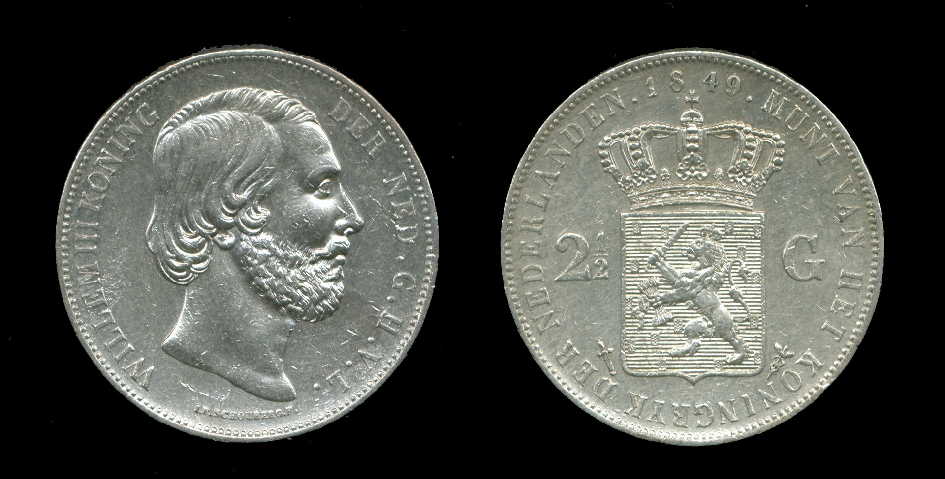 NEDERLAND, 2½ Gulden Willem III 1849 (Sch.575), ZF/PR