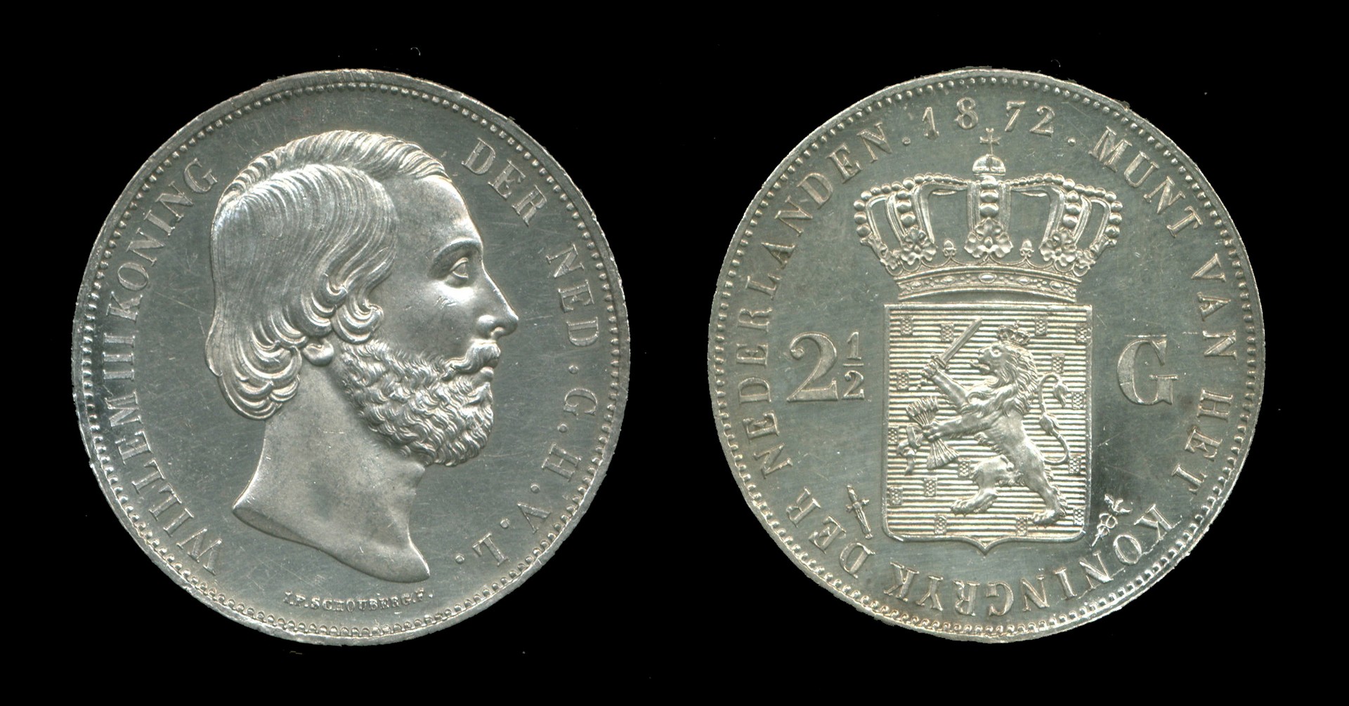 NEDERLAND, 2½ Gulden Willem III 1872 (Sch.598), PR