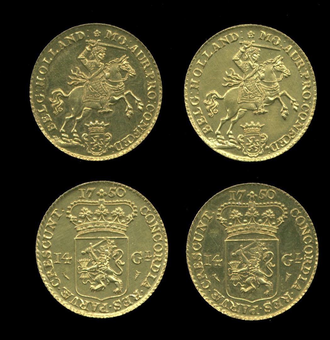 NEDERLAND, 2 x gouden Rijder 1750 naslag, PR