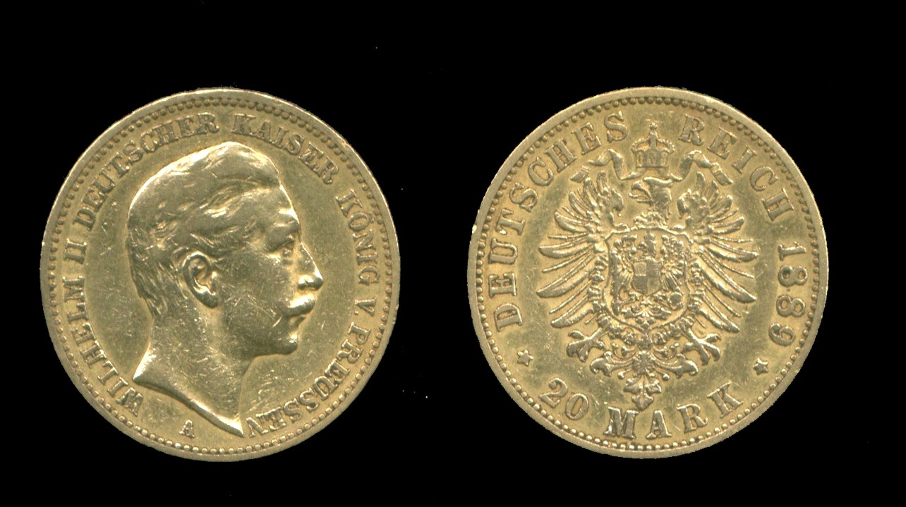 DUITSE KEIZERRIJK, Wilhelm II, 20 Mark 1889A (Km.516), F/ZF