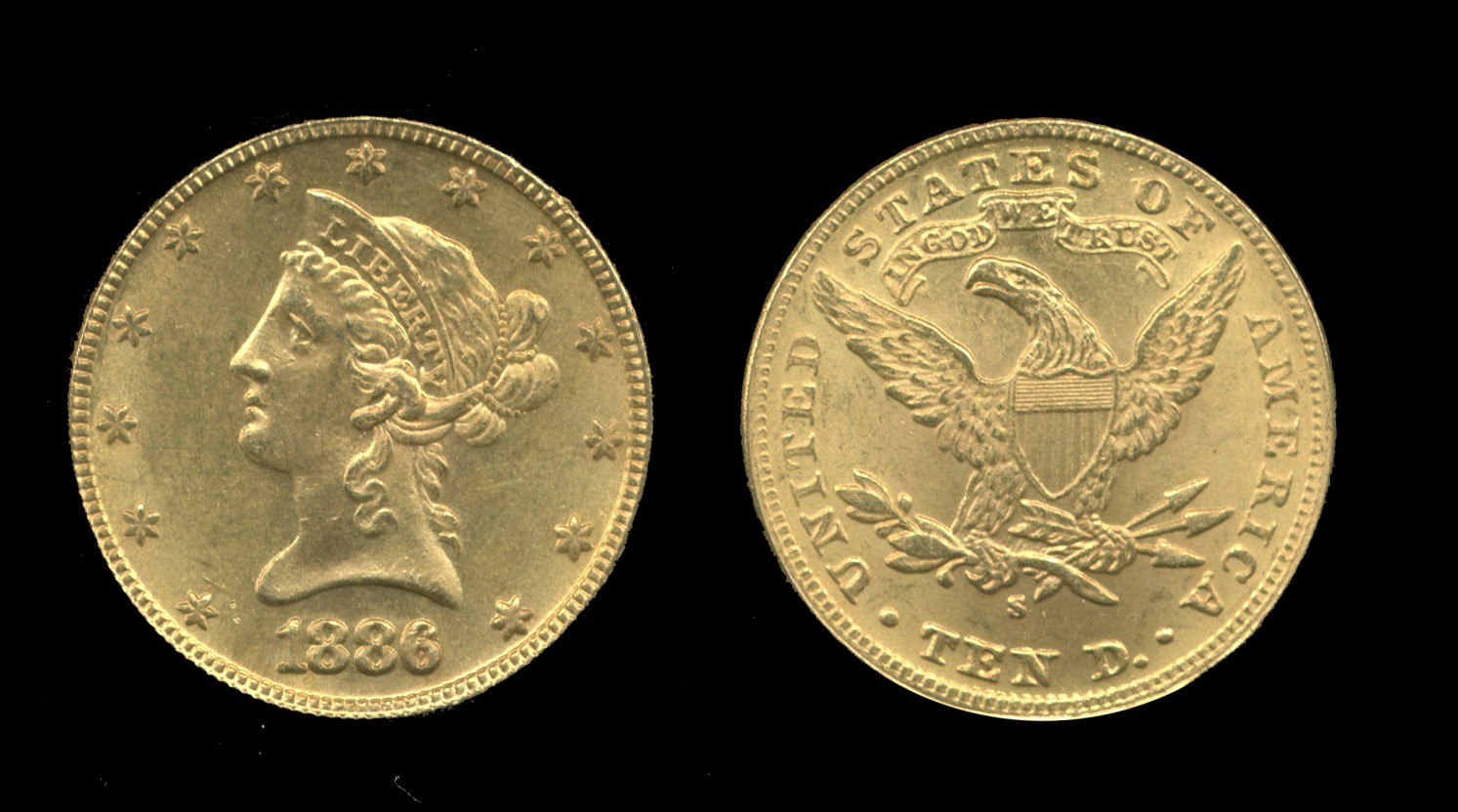 USA, 10 Dollar 1886S, 'Coronet Head' (Km.102) goud, PR