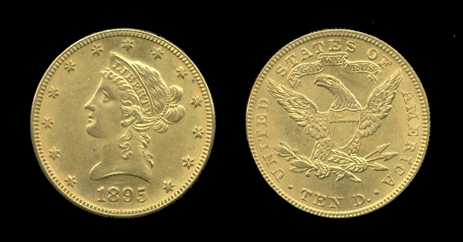 USA, 10 Dollar 1895, 'Coronet Head' (Km.102) goud, ZF/PR