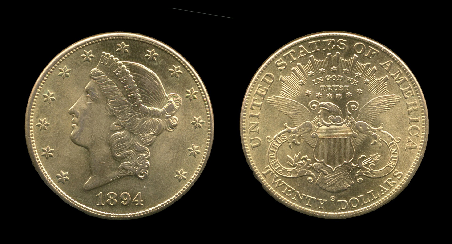 USA, 20 Dollar 1894S, 'Coronet Head' (Km.74,3) goud, PR