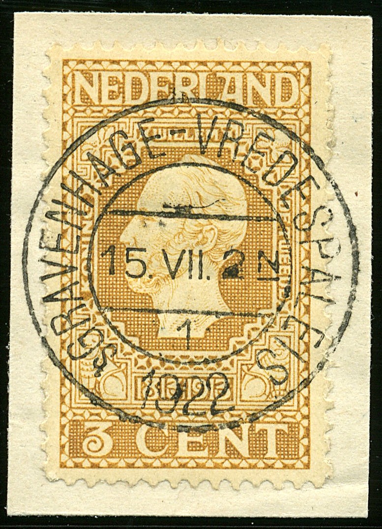 Kortebalk ´sGRAVENHAGE-VREDESPALEIS als verzoekafstempeling op 2½c, 3c en 5c Jub. ´13 op knipsel. Luxe!