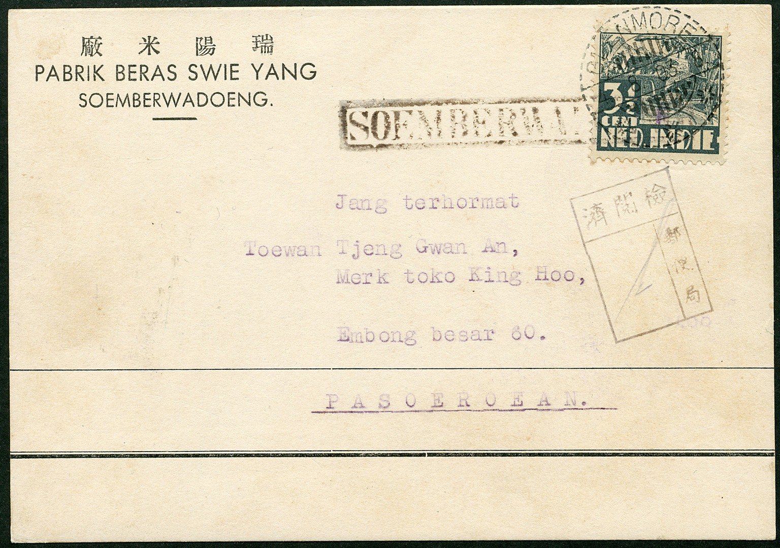 Java. SOEMBERWADOENG train-halt pmk on censored postcard bearing 3½c via Glenmore 4.8.03 to Pasoeroean (vNV.RR)