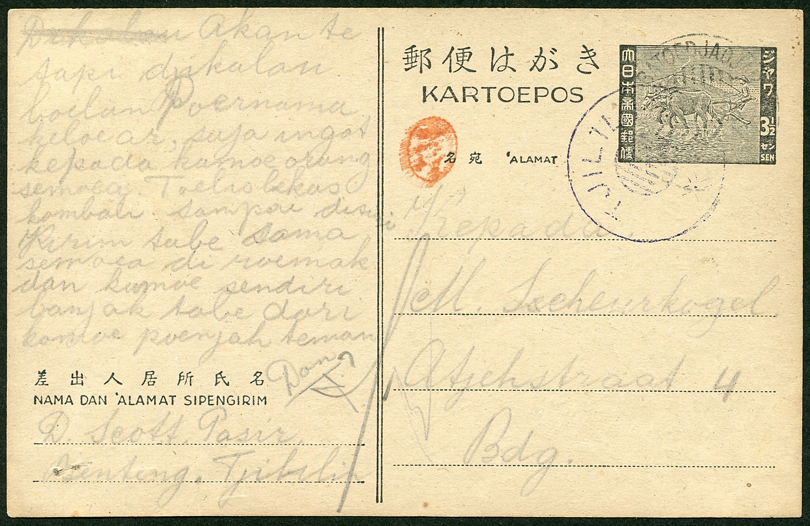 Java. TJILILIN delivery house pmk in blue on censored 3½s postcard Bu.6 via Batoedjadjar 10.6.05 to Bandoeng (vNV.071, RR)