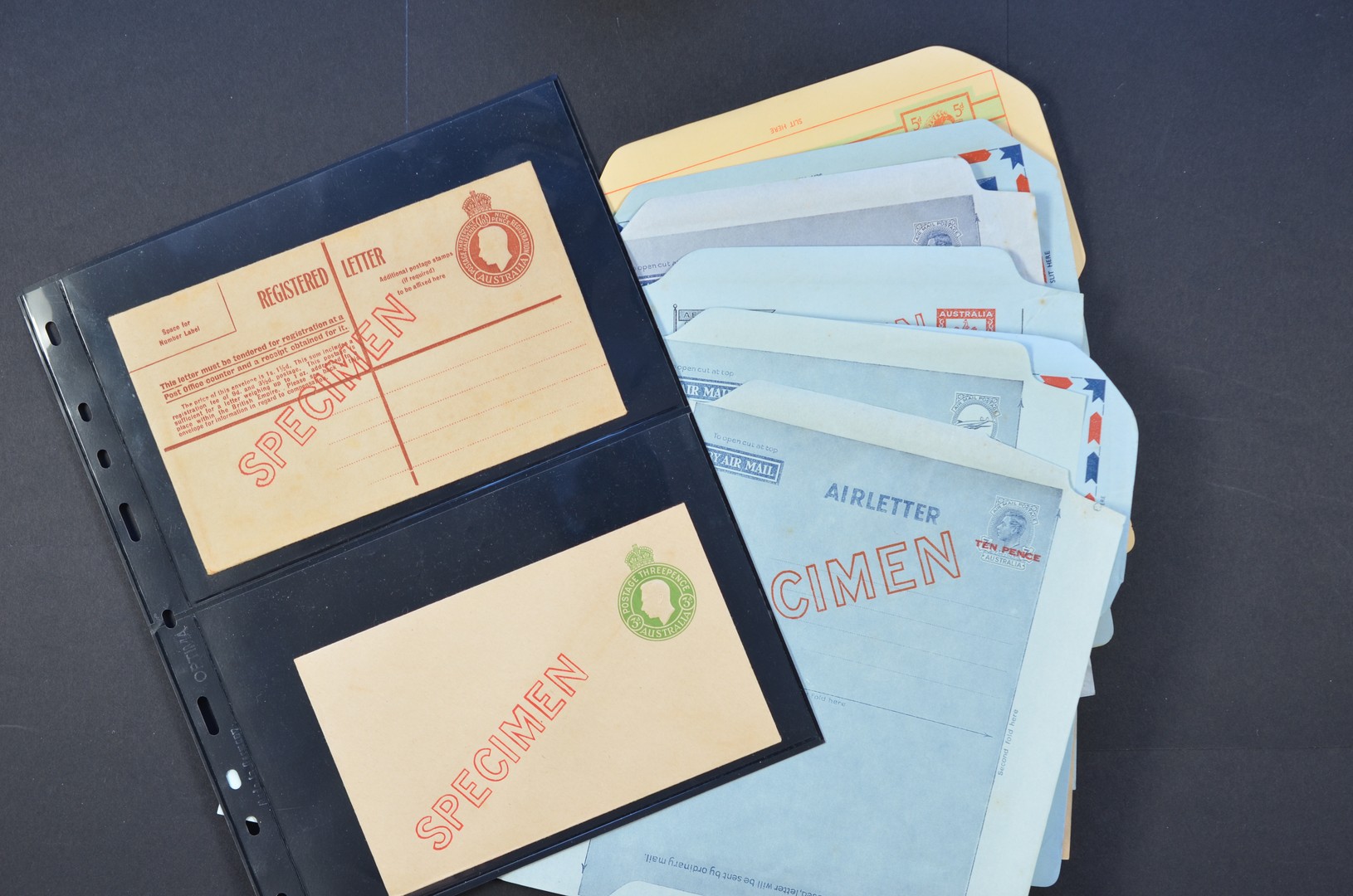 ENGELSE KOLONIËN, Australië, 5 ongebruikte postkaarten/brieven, 9 ongebruikte krantenbanden en Luchtpostbrieven, alle met Specimen-opdruk