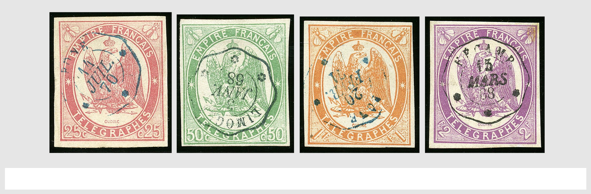 FRANKRIJK, Telegraaf, meest gebruikte verz. op albumbladen met o.a. Yv.1/4, 13, 20