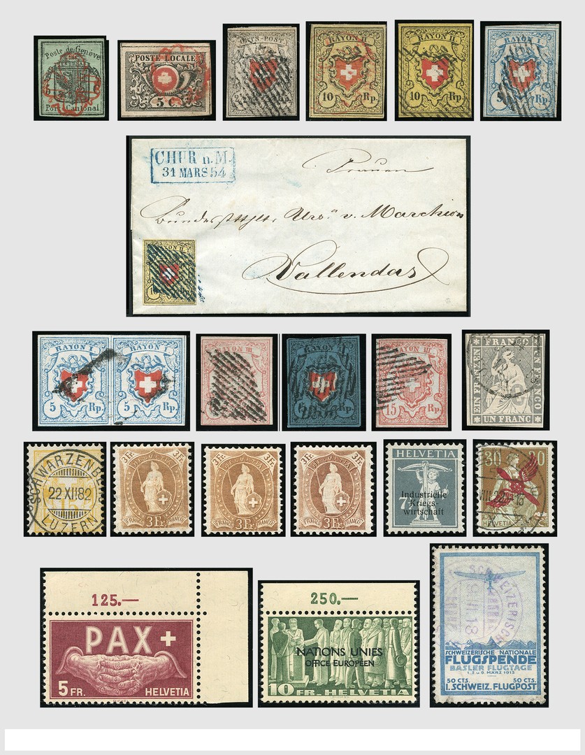 ZWITSERLAND 1845-2003, Prachtig opgezette verzameling o/*/**, vaak dubbel verzameld, met uitgebreid Cantonaal deel (met 4 attesten), mooi gedeelte Staande en Zittende Helvetia, alle blokken, Pax-serie (2), combinaties, Port, Int. Org., Proeven en andere variëteiten, het geheel in mooie kwaliteit in 9 albums. Zeer hoge cataloguswaarde!