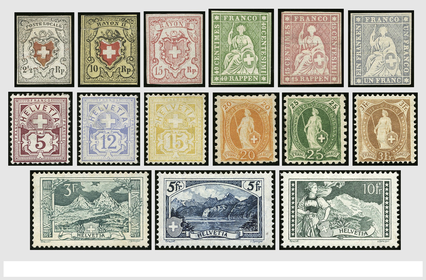 ZWITSERLAND 1850-1960, geheel ongebruikte resp. postfrisse verzameling in insteekboek met vele goede tot zeer goede nrs., bevat o.a. uitgebreid 'Staande Helvetia' met typen en tandingen en verder o.a. 121, 226/28, PAX-serie, Luchtpost, alle blokken w.o. blok 2 in groot vel postfris. Prachtkoop met hoge cataloguswaarde!