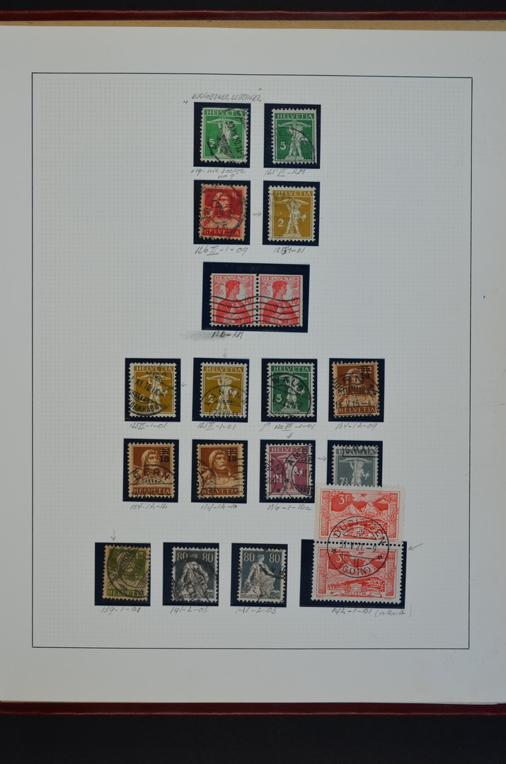 ZWITSERLAND 1907-1956, gebruikte verzameling plaatfouten, volgens Zumstein opgezet, waarbij betere ex. o.a. 112.1.11, 15.1.09 en 164.2.01C
