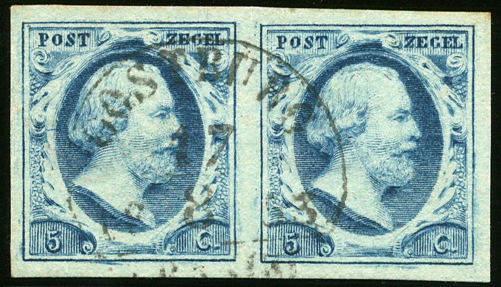OOSTBURG B (EY.350) op 5 cent nr. 1d-Pl.II-94/95. Breed gerand prachtpaar met volledige, centrale afst. Zeldzaam in deze kwaliteit! Ex Dreikurs