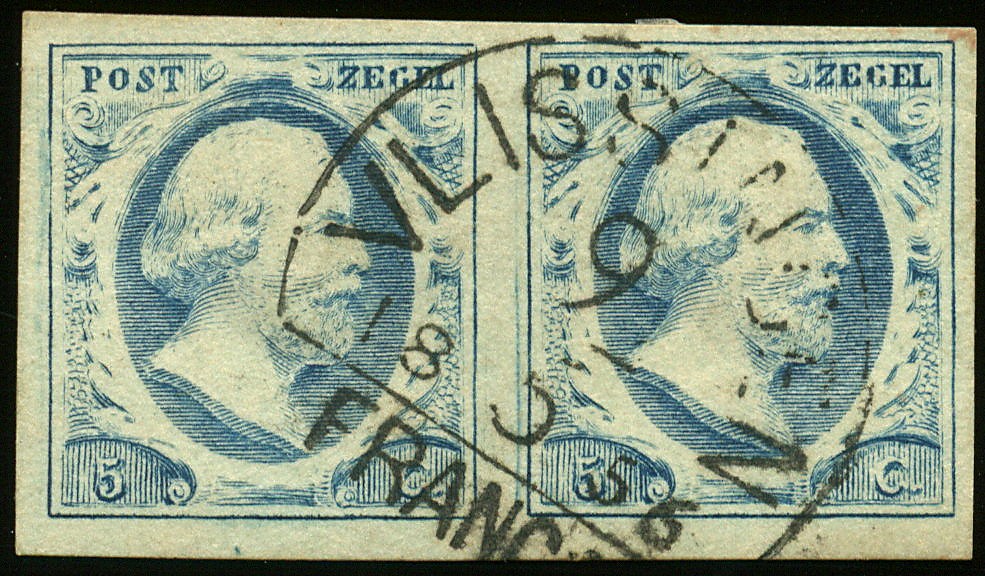 VLISSINGEN C groot (EY.100) op 5 cent. Mooi tot breed gerand prachtpaar met centrale afst.