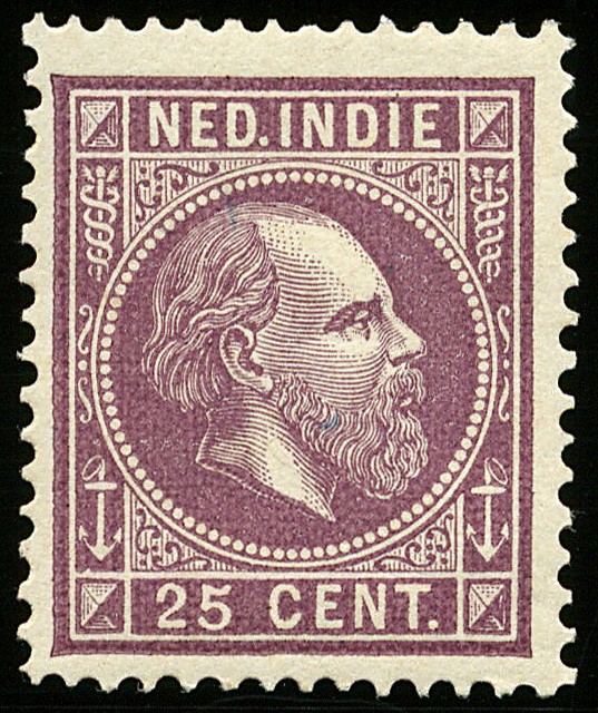 13E, 25 cent donkerpaars, Kt. 13½ x 13¾ gr.g., postfris prachtex. € 250