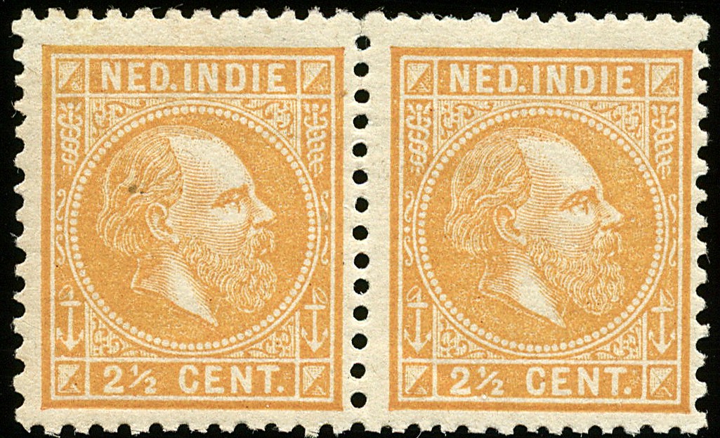 7G + 7F, 2½ cent geel in gecombineerde tanding 11½ x 12, 12½ x 12, ongebruikt prachtpaar € 450